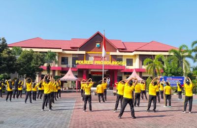 Jaga Stamina di Tengah Tugas, Polres Probolinggo Rutin Gelar Senam Pagi Bersama