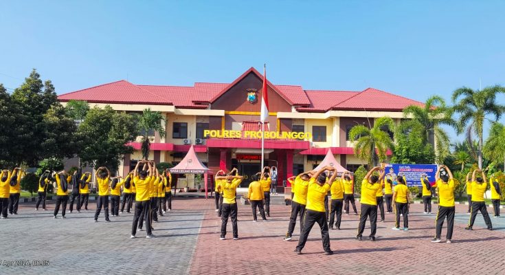 PROBOLINGGO, Jawara Post — Pagi yang cerah menyelimuti halaman Polres Probolinggo, Jumat (17/4/2026). Puluhan personel tampak berbaris rapi mengenakan seragam olahraga berwarna kuning, mengikuti kegiatan senam pagi bersama dengan penuh semangat.