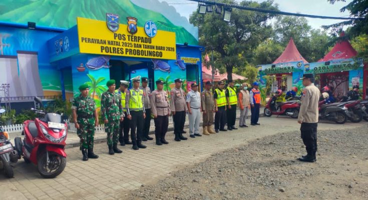PROBOLINGGO, Jawara Post – Semangat kesiapsiagaan mewarnai apel pagi pengamanan Natal 2025 dan Tahun Baru 2026 yang dipimpin langsung Kapolsek Kota Kraksaan, Kompol Masykur, S.H., M.H., di halaman Pos Terpadu Pengamanan Nataru Polres Probolinggo, Jalan Panglima Sudirman, Alun-Alun Kota Kraksaan, Sabtu (27/12/2025).