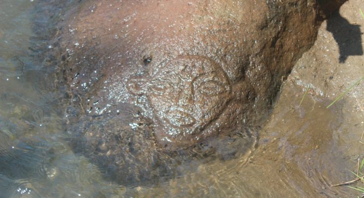 Karena apa ? dikarenakan terdapat sosok yang menjelma suatu wajah misterius pada pemukaan batu. Terpampang bentuk lingkar sedikit mengkrucut yang membentuk wajah lalu dihiasi oleh dua mata, satu mulut serta ditengahnya terdapat hidung.