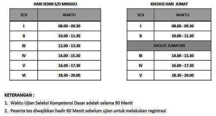- Hadir di lokasi tes paling lambat 60 (enam puluh) menit sebelum tes dimulai;