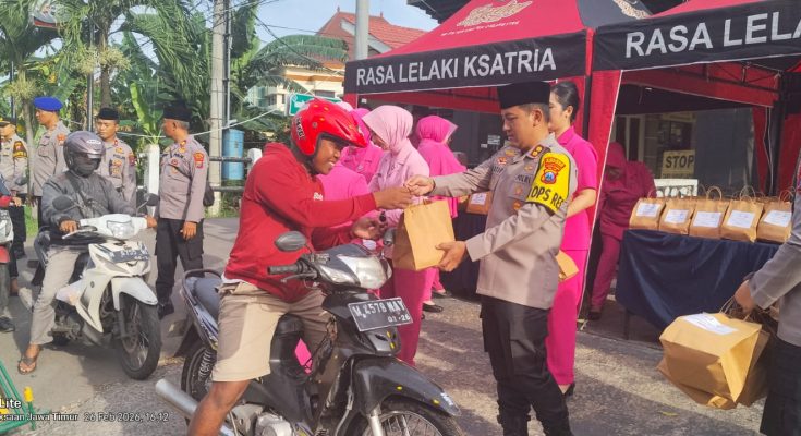 PROBOLINGGO, Jawara Post – Deru kendaraan yang melintas di kawasan Kraksaan, Kabupaten Probolinggo, Kamis (26/2/2026) sore, berpadu dengan suasana hangat yang tak biasa. Di tepi jalan, Kapolres Probolinggo, AKBP Dr. M. Wahyudin Latif, S.H., S.I.K., M.Si., turun langsung membagikan paket takjil kepada para pengendara dalam kegiatan “Berbagi Takjil On The Road” yang digelar oleh Polres Probolinggo menyambut Ramadan 1447 Hijriah.